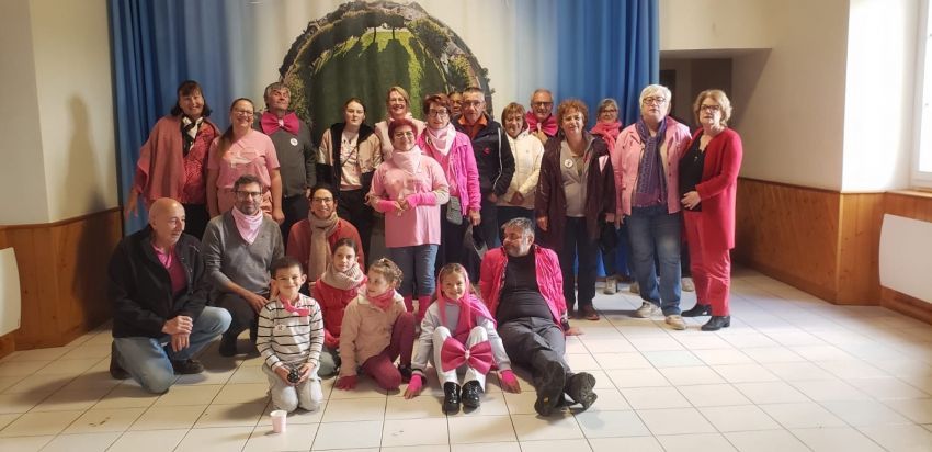 Sous l'impulsion de SEA, les participants, de bonne humeur et habillés en rose, ont parcouru 5 km à travers les hameaux et le bourg de Saint Escobille